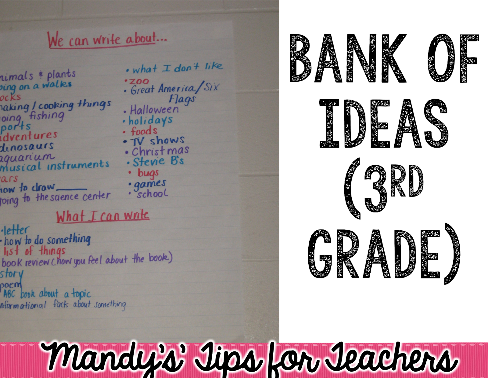 In the beginning of the school year, we actually brainstorm a bank of ideas students can write about and refer to all year long. We do this as a whole class.